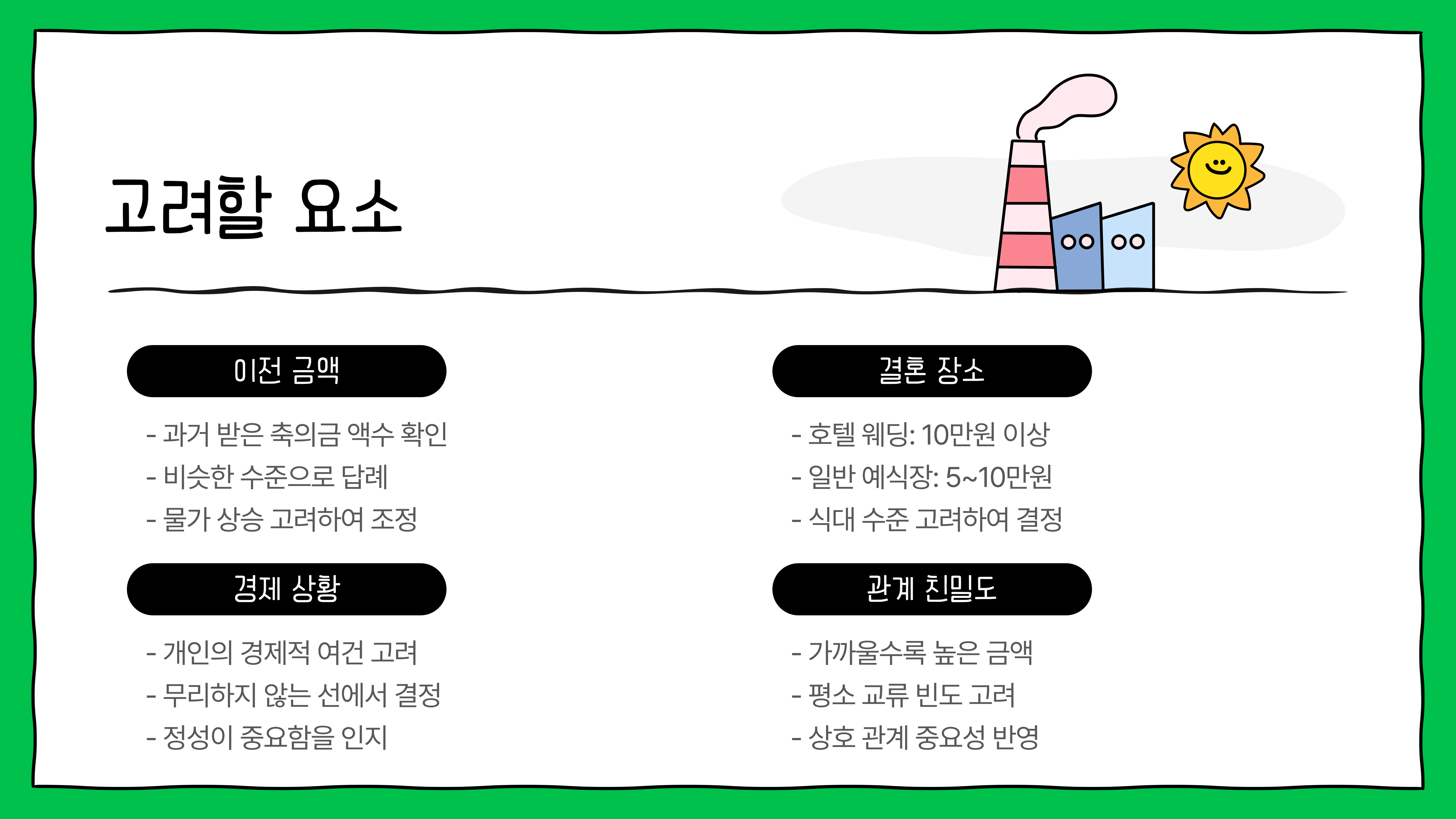 - 내가 이전에 받았던 금액: 평소 경조사에서 주고받은 금액을 고려하는 것이 중요합니다.